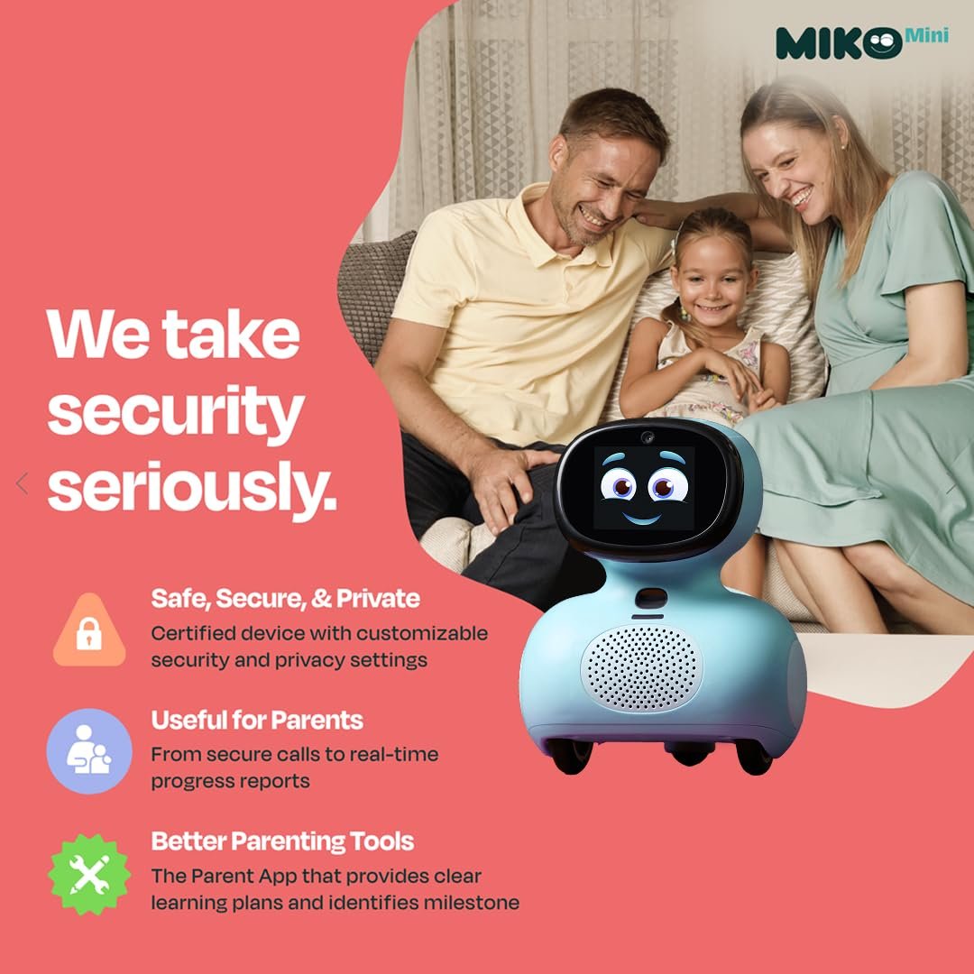 - ADAPTIVE LEARNING: Miko’s advanced AI nurtures children’s confidence in learning. It crafts personalized plans that encompass reading, writing, math, and communication, enhancing their critical thinking skills. With Miko, every child embarks on a tailored educational adventure, ensuring a holistic development.