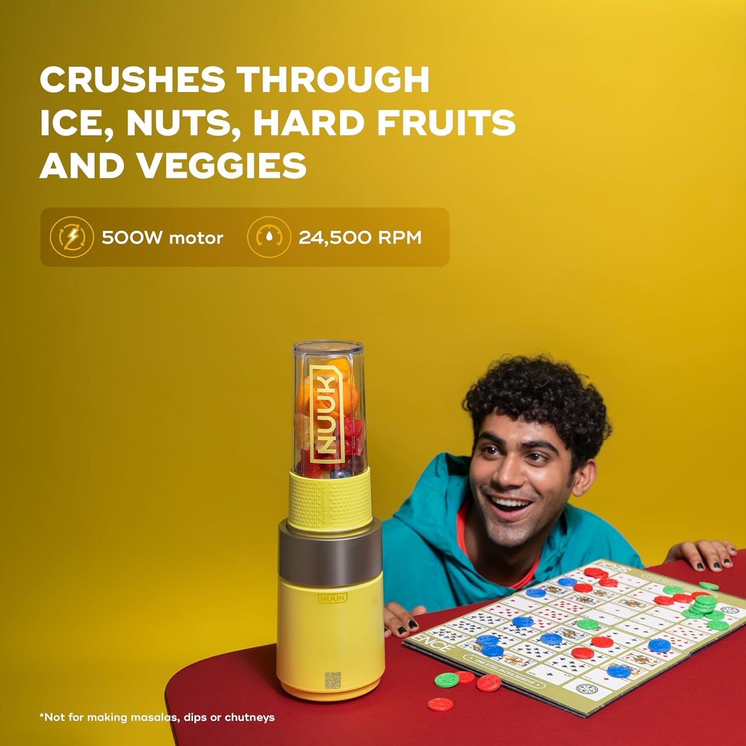 NUUK KRUSH Blender Mixer Grinder | 500W Personal Smoothie Blender with 24,500 RPM | 6-Leaf Blade | Compact Mixer Grinder for Gym, Office, Kitchen | BPA-Free 460ml Go Jar™ | Titanium Alloy Build