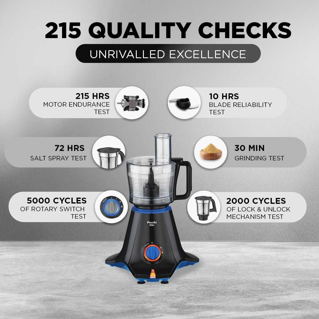 Preethi Zion Mixer Grinder for Kitchen – 4 Jars 750 Watt Mixie (3 Stainless steel Jars+1 Master Chef Plus Food processor Jar), Flexi lids, Vega W5 motor, Black (MG-227)