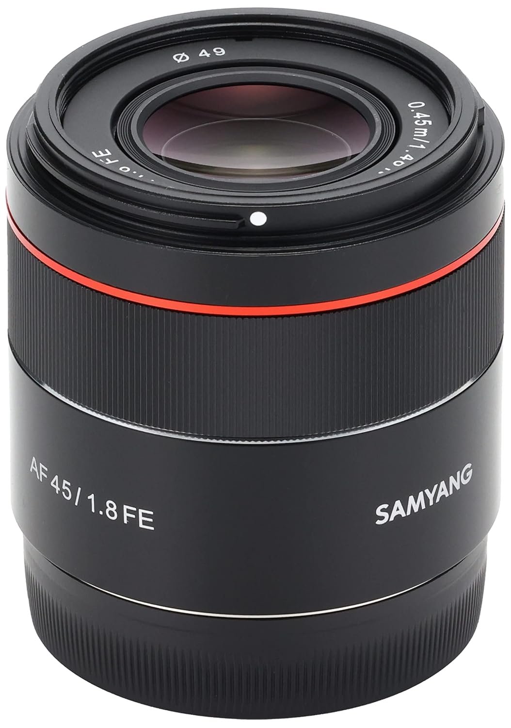 The Samyang AF 45mm F1.8 FE has been designed to provide the most suitable angle of view to imitate the natural human field of vision (53 degrees) The Aspherical and Extra-low Dispersion glass elements, along with Ultra-Multi-Coating help to provide superb image quality and edge-to-edge sharpness. It offers fast, precise and quiet autofocusing, right down to 45cm, so you never need miss another unforgettable moment. With its Linear-Activator Step-Motor technology, you can experience reliable, internal autofocusing. – Image Sensor size: Full frame 35mm – Focal length: 45mm – Maximum aperture: F/1.8 – Filter Diameter: 49mm – Angle of view: 52.31 degrees (full frame sensor), 35.31 degrees (APS-C sensor) – Minimum focus distance: 0.45m – Focus type: Auto-Focus – Number of diaphragm blades: 9 (rounded) – Lens construction: 7 elements in 6 groups (2 Aspherical, 1 Extra-low Dispersion) Ultra-Multi-Coating – Dimensions (max): 61.8mm Dia. x 56.1mm L
